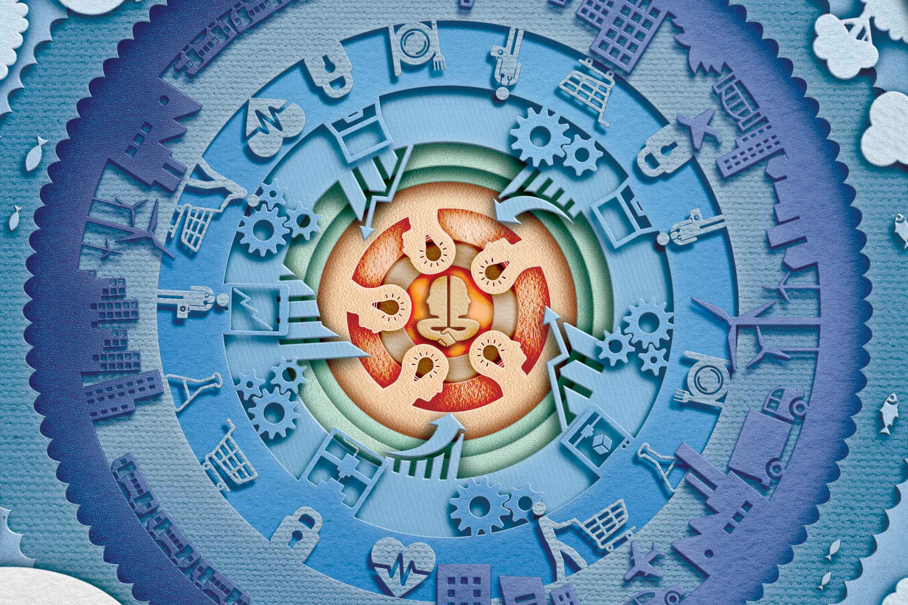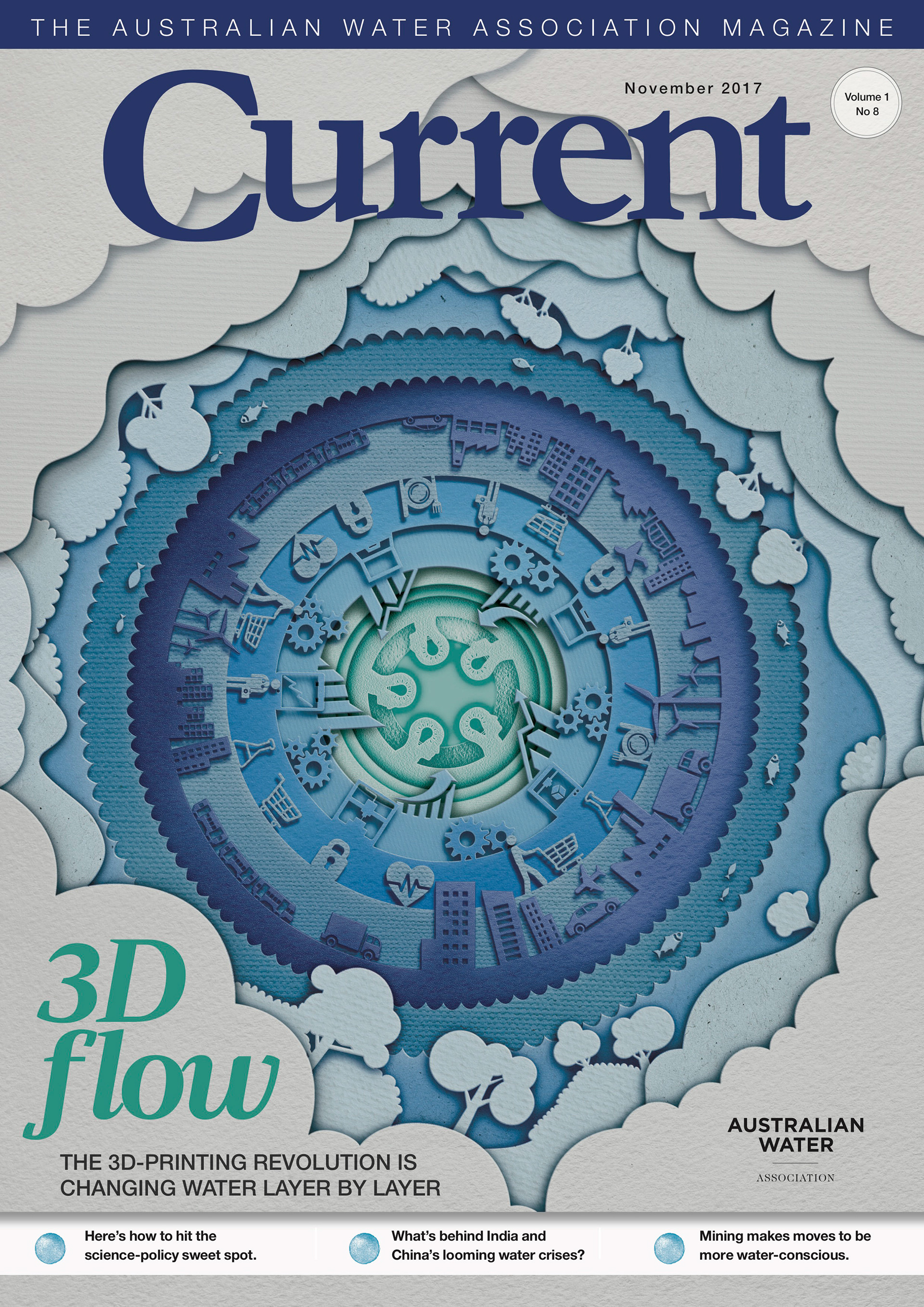 My task was to create an illustration for a trade magazine focusing on the water industry. The brief asked that I use a paper cutout layering effect and illustrate the use of water domestically and commercially with symbols.